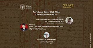 Webinar “Shi’ur Shabbat” akan berdiskusi tentang kaitan antara Tantrāyana sebagai penanda teologis dari ajaran Siwa Siddhanta di Nusantara. Begitu juga kaitannya antara unsur Tantrāyana dalam kitab-kitab Tafsir Melayu Klasik. Diskusi ini akan menggunakan analisis pembacaan penanda atau “Semiotika” yang dikembangkan oleh Sebeok untuk mengidentifikasikan sejumlah kosakata dalam sejumlah Tafsir Melayu Klasik seperti Batu Bersurat Trengganu (BBT), Fragmen Tafsir Al-Kahfi (Cambridge MS Ii.6.45 fol. 17), Tafsir Turjumān Al-Mustafid karya Syekh Abdurrauf Sinkel dari Aceh, Bustan as-Salikīn, Al-Muntahī, At-Tibyan fi Ma’rifah Al-Adyān, dan kitab Jawhar al-Haqāiq.